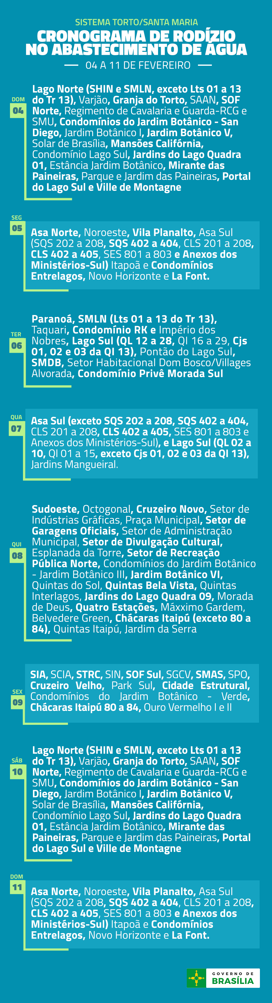 Cronograma do rodízio – 4 a 11 de fevereiro